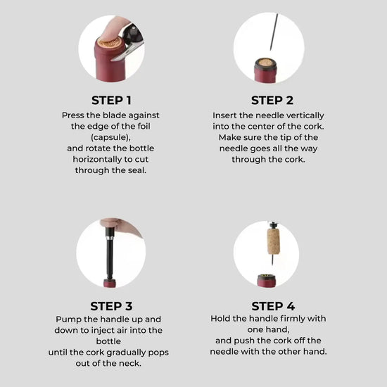 Compressed air creates a gentle pressure between the wine and the cork, lifting it smoothly without damaging the bottle neck.